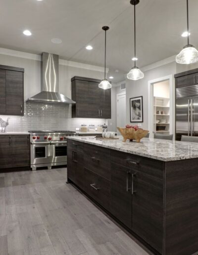 The project was an extensive remodel and second-story addition to a 1960s home, featuring an updated exterior, new siding, trim, roofing, new architectural elements; new windows and doors throughout; updated entryways; and large expansion of the rear deck. The owner envisioned a blend of modern interior upgrades including removing walls to open up the living space. This resulted in a more open look and feel. Additionally, the project included completely remodeling the kitchen / dining / living area, upgrading and expanding the master suites by approximately 150 square, and adding a second-story featuring an office with a balcony.